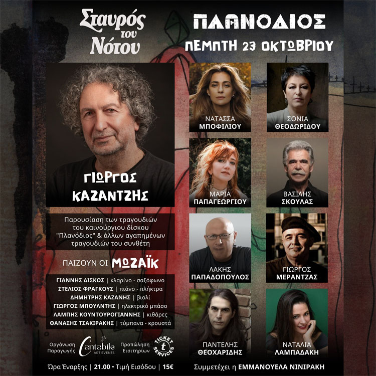 Ο Γιώργος Καζαντζής είναι αναμφισβήτητα ένας από τους πιο παραγωγικούς και δημοφιλείς συνθέτες του σύγχρονου ελληνικού πενταγράμμου. Ο δημιουργικός του δρόμος πρόσφατα τον οδήγησε στη συνεργασία με το σχήμα Μωζάικ, της εκπομπής "Μουσικό Κουτί" και τη δημιουργία της συλλογής τραγουδιών με τίτλο "Πλανόδιος". Με αφορμή την παρουσίαση - συναυλία του στις 23 Οκτωβρίου στο Σταυρό του Νότου, λίγο πριν μια ακόμα "ιερή στιγμή" της συναυλίας, όπου "ολοκληρώνεται ο κύκλος της δημιουργίας" μέσα από την επικοινωνία με το κοινό, δίνουμε το λόγο στο δημιουργό και το έργο του.