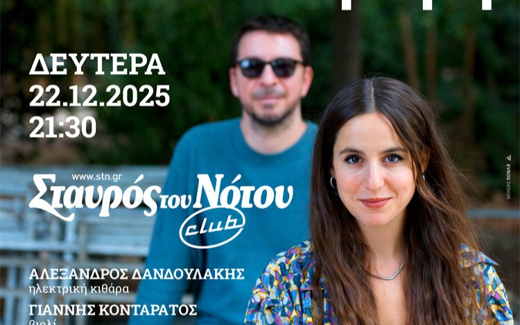 Δευτέρα 22 ΔεκεμβρίουΟ τραγουδοποιός Νίκος Ζουρνής και η ερμηνεύτρια Ντίνα Σκέμπρη παίζουν μαζί από το 2022, ωστόσο ανεβαίνουν για πρώτη φορά στη σκηνή του Σταυρού του Νότου Club, τη Δευτέρα 22 Δεκεμβρίου.