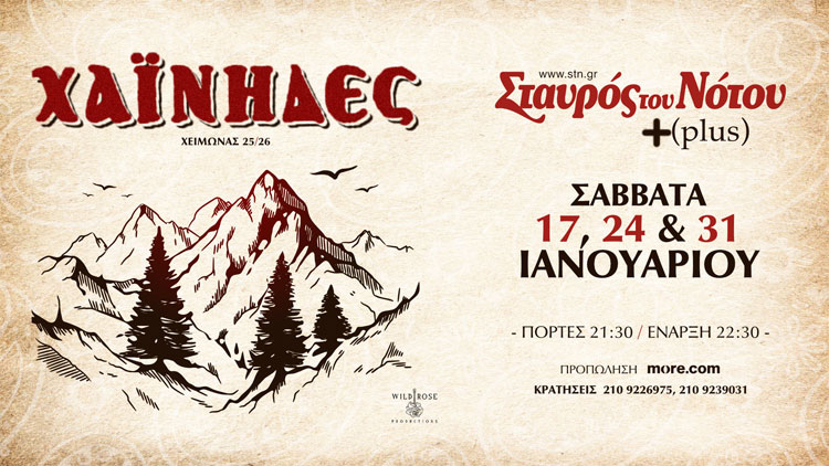 Σάββατα 17, 24 ΚΑΙ 31 ΙΑΝΟΥΑΡΙΟΥΟι Χαΐνηδες υποδέχονται τη νέα χρονιά και μας προσκαλούν τα Σάββατα 17, 24 και 31 Ιανουαρίου στον Σταυρό του Νότου Plus!