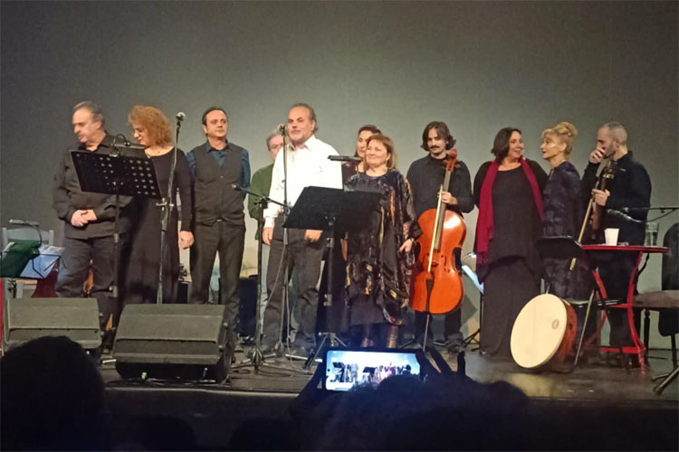 Η συνθέτις Αρετή Κοκκίνου, η οποία είχε και την ενορχηστρωτική επιμέλεια της εκδήλωσης, στην κιθάρα, ο Λευτέρης Ανδριώτης στη λύρα, ο Καλλικράτης Μπουρδάρας στο βιολοντσέλο ο Σωκράτης Γανιάρης στα κρουστά και στην ερμηνεία ο πάντα ευαίσθητος και ακριβής Βασίλης Γισδάκης, η φερμένη από άλλη εποχή- ρομαντική Χριστίνα Μέτσικα, η συγκινητικά γήινη Μαρία Σταυριανουδάκη και ο βαθειά εκφραστικός συνθέτης Αλέξανδρος Χατζηνικολιδάκης, με την κιθάρα του ανά χείρας.
